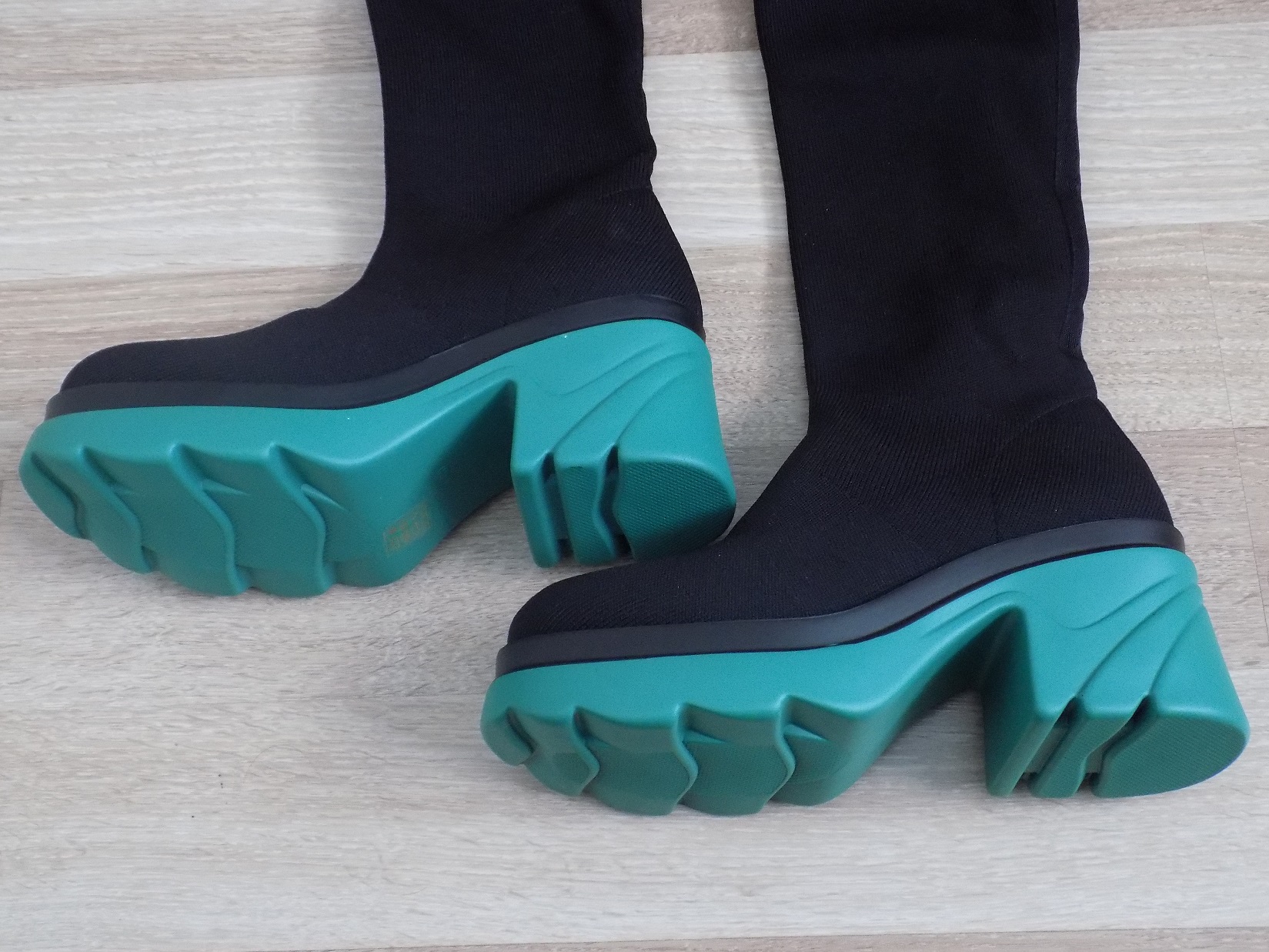 Nie są ocieplane, podszewka materiałowa, wykonane z materiału, wysokość obcasa: 8cm, wysokość cholewki: 39 cm, rodzaj obcasa: klocek, tęgość: G, wysokość platformy: 3cm, obwód cholewki: 41 cm, nosek okrągły, długość wkładki: 24,5 cm.