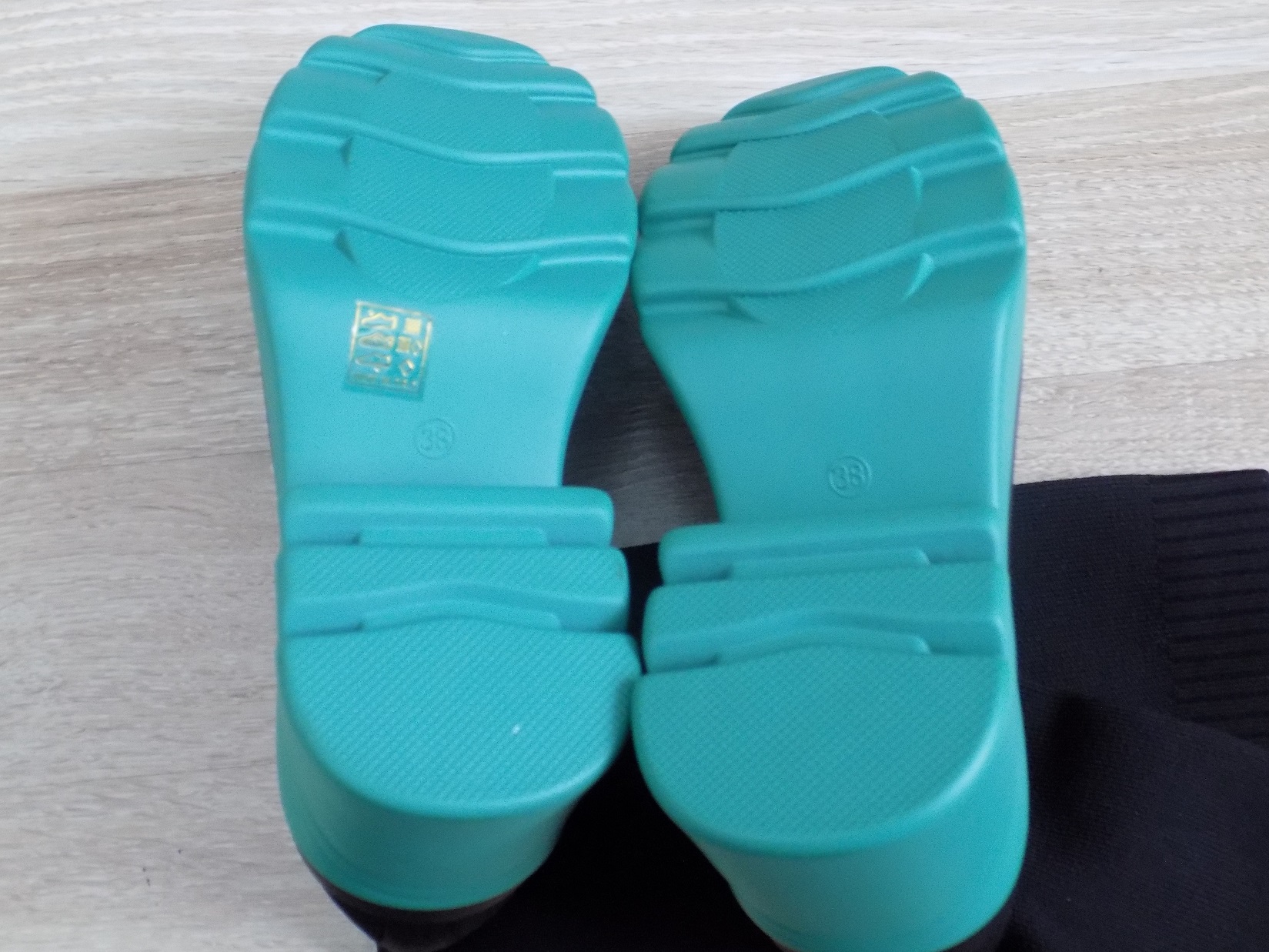 Buty są w kolorze czarno-zielonym, są nowe nieużywane, klasyczny fason do codziennego użytku, są super lekkie.